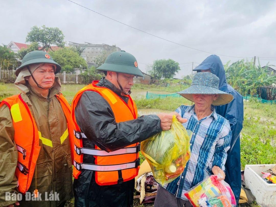 Đồng thời tổ chức các tổ công tác đi kiểm tra cụ thể các điểm xung yếu, ngập lụt, phân công trực ban 24/24 giờ, theo dõi chặt chẽ diễn biến mưa lũ trên địa bàn; tổ chức kiểm tra thực tế, chỉ đạo lực lượng tại chỗ kiểm tra, rào chắn, cắm biển cảnh báo tại các vị trí ngập, sạt lở; hướng dẫn phân luồng bảo đảm an toàn giao thông; kịp thời căng dây, gắn biển cảnh báo tại các thôn, buôn, khu vực xung yếu.Bên cạnh đó, lực lượng công an xã, ban chỉ huy quân sự xã đã trực 24/24 giờ với 100% quân số; chủ trì, phối hợp với các lực lượng tại chỗ tổ chức sơ tán dân ra khỏi vùng bị ngập đến nơi an toàn; sử dụng drone đưa lương thực, nhu yếu phẩm cứu trợ cho các hộ dân khu vực bị cô lập.