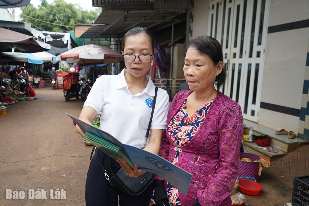 Chị Lê Thị Thanh Huyền (xã Liên Sơn Lắk) vừa là cán bộ xã vừa là cộng tác viên thuộc Tổ chức dịch vụ Bưu điện tỉnh, để vận động người dân tham gia BHXH tự nguyện và BHYT, ngoài giờ hành chính chị đến từng hộ dân để tuyên truyền. Theo chị Huyền, với đặc thù người dân địa phương đa phần là đồng bào dân tộc thiểu số và làm nông nên kinh tế còn nhiều khó khăn. Thêm nữa, nhiều người chưa hiểu, có tâm lý sợ các loại hình bảo hiểm thương mại nên ngại tham gia. Do đó, chị phải mất rất nhiều thời gian để giải thích, vận động để họ hiểu và phân biệt được đâu là chính sách BHXH của Nhà nước. Đặc biệt, chị đã xây dựng kế hoạch riêng cho mình để tuyên truyền, vận động; đồng thời tích cực phối hợp với các tổ chức, đoàn thể, cán bộ thôn, buôn để tuyên truyền giúp người dân hiểu và chủ động tham gia.