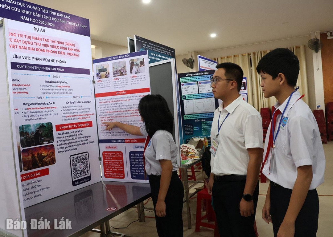 Tiêu biểu có thể kể đến Dự án Ứng dụng trí tuệ nhân tạo tạo sinh (GenAI) trong việc xây dựng thư viện video hình ảnh hóa lịch sử Việt Nam giai đoạn phong kiến đến hiện đại, của các em Võ Minh Chuyên và Đặng Tuấn Kiệt (Trường THCS Lương Thế Vinh, phường Tuy Hòa).