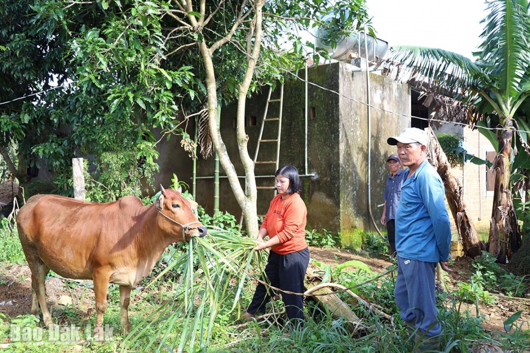 Nguồn vốn tín dụng chính sách cũng trở thành “đòn bẩy” quan trọng. Hàng nghìn hộ dân tiếp cận được vốn vay ưu đãi, có điều kiện phát triển kinh tế. Trường hợp chị Chu Thị Hường (thôn 10) là minh chứng rõ nét. Được vay 90 triệu đồng giải quyết việc làm năm 2023, chị đầu tư xây dựng chuồng trại, mua bò giống và ghép cải tạo 1 ha cà phê già cỗi. Từ chỗ thiếu trước hụt sau, đến nay gia đình chị từng bước vươn lên khá giả.