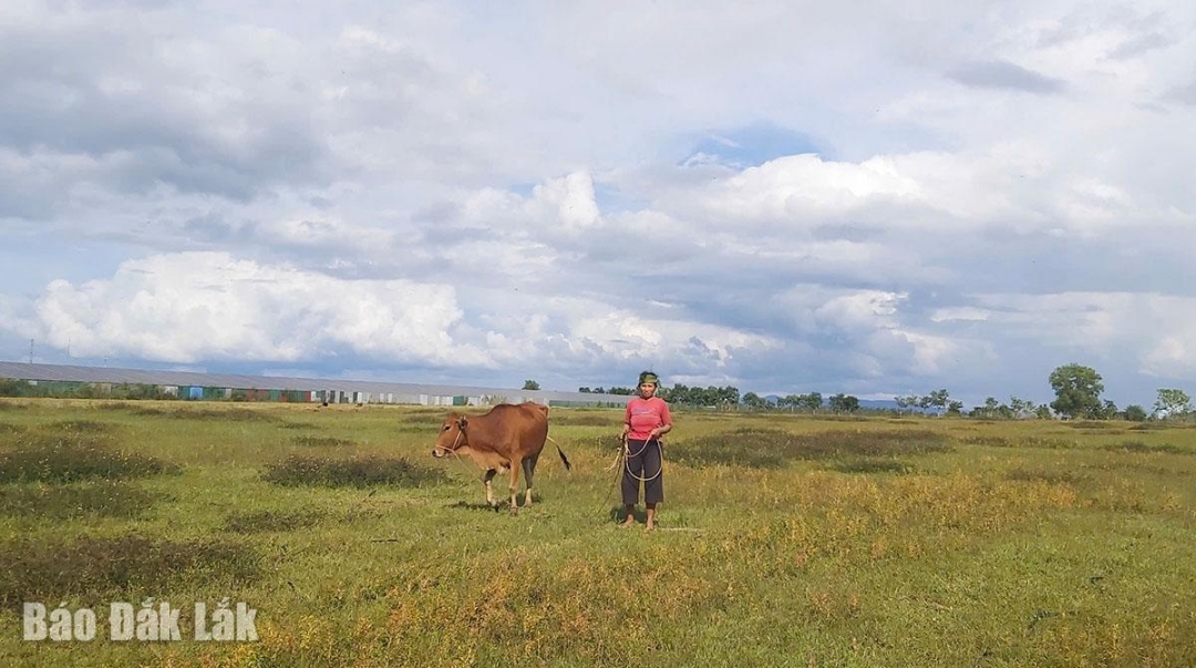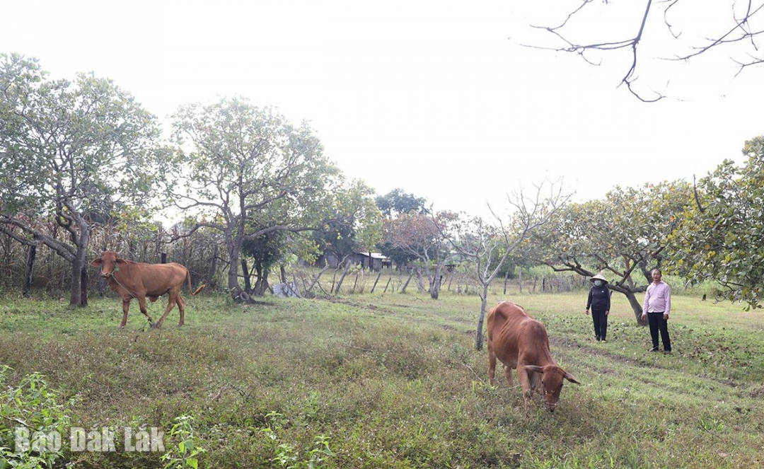 | Gia đình bà Lương Thị Chinh (ở thôn 19 Ea Rốk) được hỗ trợ bò giống từ nguồn vốn của Chương trình 1719 để chăn nuôi. |