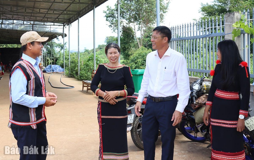 Bên cạnh hỗ trợ sinh kế, địa phương còn chú trọng nâng cao đời sống vật chất và tinh thần cho người dân. Năm 2024, Bộ Công an hỗ trợ xây dựng 8 căn nhà trên địa bàn buôn, giúp các hộ khó khăn ổn định nơi ở, yên tâm sản xuất. Đồng thời, xã đẩy mạnh ứng dụng công nghệ số, hướng dẫn người dân sử dụng dịch vụ công, tra cứu chính sách hỗ trợ và tiếp cận các gói vay vốn một cách thuận lợi, minh bạch hơn.