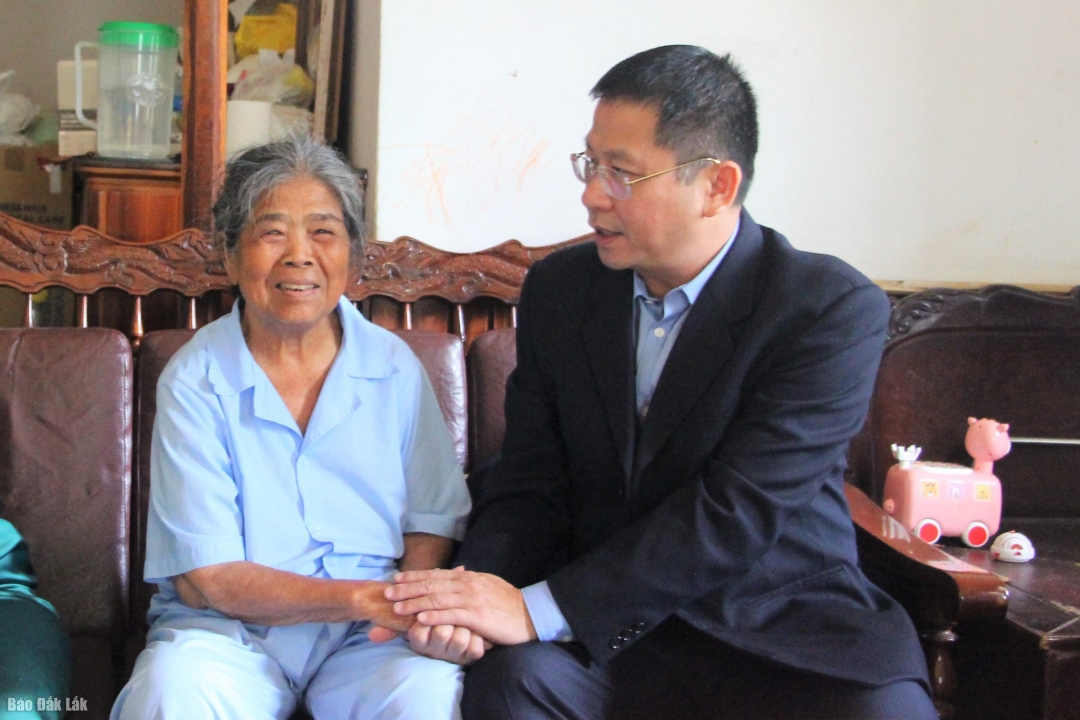 | Trao kinh phí hỗ trợ xây dựng nhà ở cho hộ gia đình ông Y Blik Byă (buôn Ea Khít, xã Ea Bhốk). |