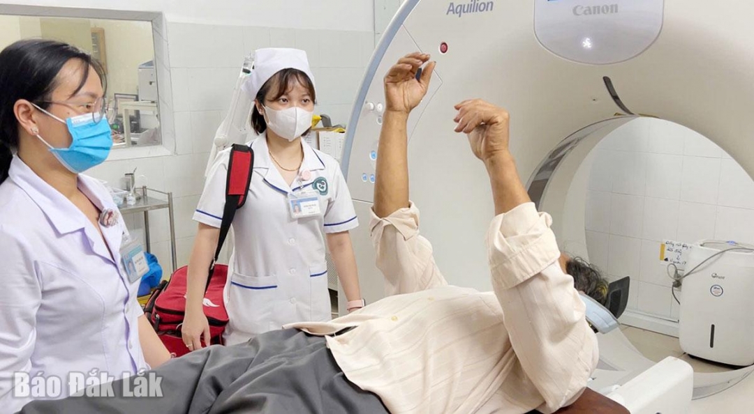 | Bệnh nhân đột quỵ được điều dưỡng, kỹ thuật viên Đơn vị Đột quỵ chụp CT-Scan để kịp thời điều trị trong "thời gian vàng". |